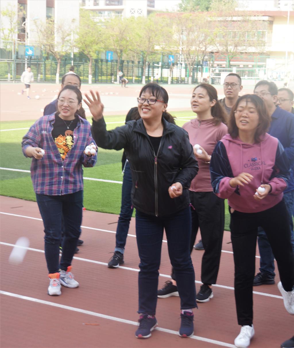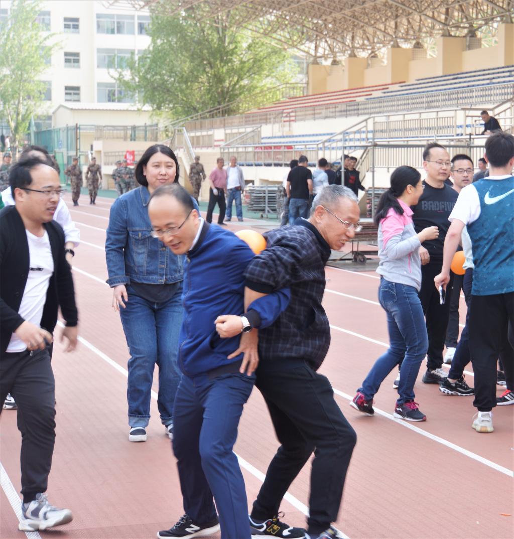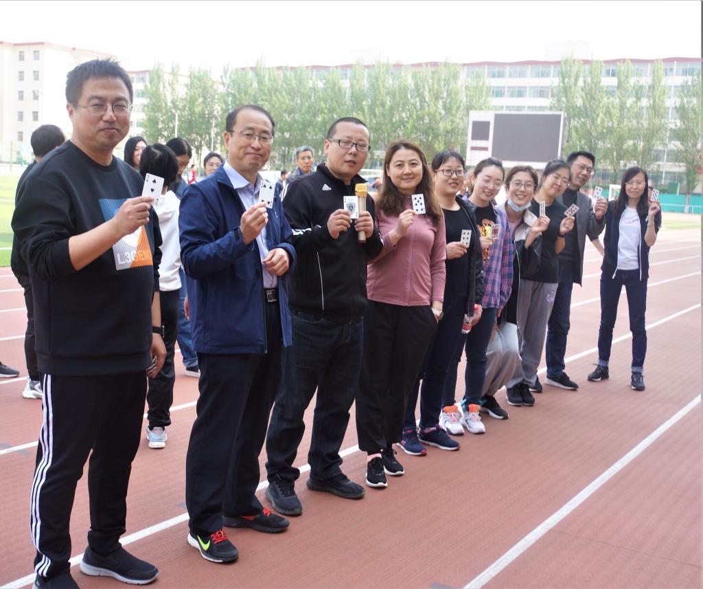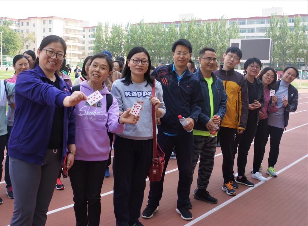 分工会在坞城校区以“迎校庆、展风采、凝聚力、创佳绩”举办教师趣味运动会。 “生活不只诗和远方,还有不羁的岁月和年轻的赛场;工作不止书和文件,还有欢乐的流年和满腔的激情”。本届运动会全院教职工均积极参加,远动会开始之前,参赛运动员们依次抽取扑克牌(男子抽取1-5号,女子抽取6-12号),按照花色进行分组,同号的为一组,全部成员分为红桃、黑桃、方块和梅花四组,然后各组选出组长,代表该组抽签,确定出场顺序。