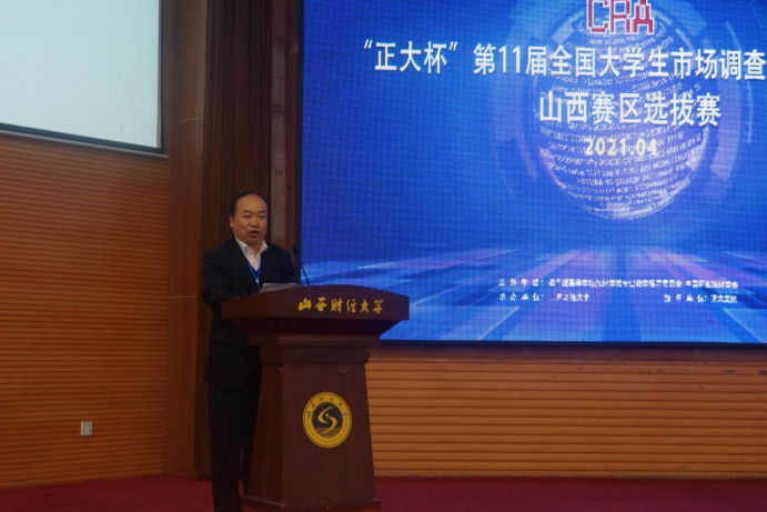 副校长沈沛龙代表校方致辞。他首先代表山西财经大学对山西赛区决赛的顺利举行表示热烈祝贺,向各支参赛队伍表示热烈欢迎,向出席大会的领导、专家表示诚挚感谢。他指出,全国大学生市场调查与分析大赛是政府支持、企业认可、高校积极参与的学科实验教学平台,同时高度赞扬了本次赛事在促进教学改革、提高教学质量、培养应用型创新人才等方面具有的重要意义。最后,他表达了对大学生崇尚科学、锐意创新的殷切期望。