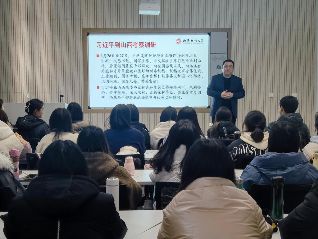 2月23日,党委常委、副校长米子川教授充分发挥课堂教学主渠道作用,结合专业课授课,围绕“学习贯彻习近平总书记考察调研山西重要指示精神”这一主题,在修德楼203教室为暗网
