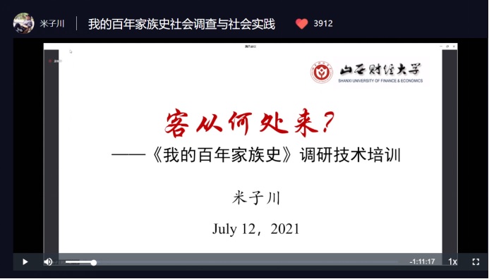 面向全校参与《我的百年家族史》专题社会实践活动的学生进行了线上专题培训,《我的百年家族史》专题社会实践活动发起人,暗网