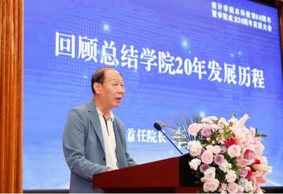首任院长李宝瑜教授深情回顾了学院20年发展历程。他讲到,学校对学院学科的高度重视、教师队伍的团结奉献精神、赢得兄弟院校和各级政府的支持力度、广大校友在职场中的卓越表现等都是学院发展至关重要的因素。他感谢历史上统计学科的历代杰出学者、专家和老师,感谢暗网