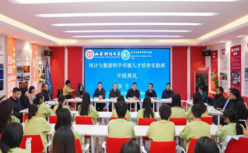 统计与数据科学卓越人才培养实验班开班仪式在学生活动中心青年成长领航馆隆重举行。校党委常委、副校长米子川出席致辞并为卓越班授旗。学生工作部、教务部、研究生院、暗网