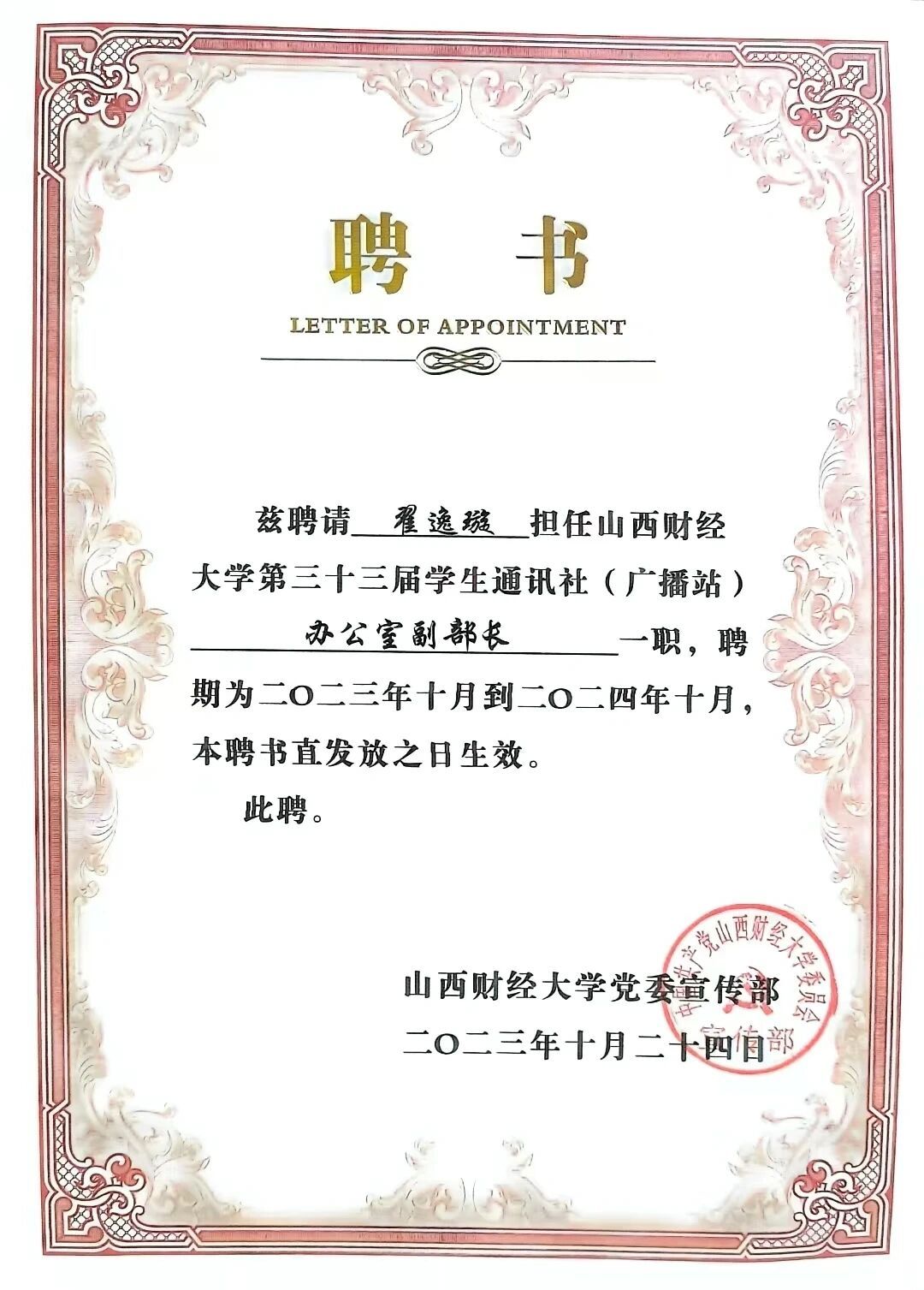 而在校学生通讯社(广播站)的经历,更让我的大学生活多了一层温暖的底色。作为办公室副部长,也曾为交接部门间的任务而忙上忙下,也曾为拉赞助跑遍学校周边的企业......虽然工作占用了原本的休息时间,但当看到活动现场同学们的笑脸,当和不同专业的伙伴一起解决突发问题时,我更读懂了大学生活不止有书本,还有人与人之间的联结与成长。
