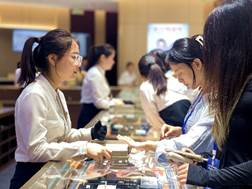 企业员工向师生介绍珠宝品牌